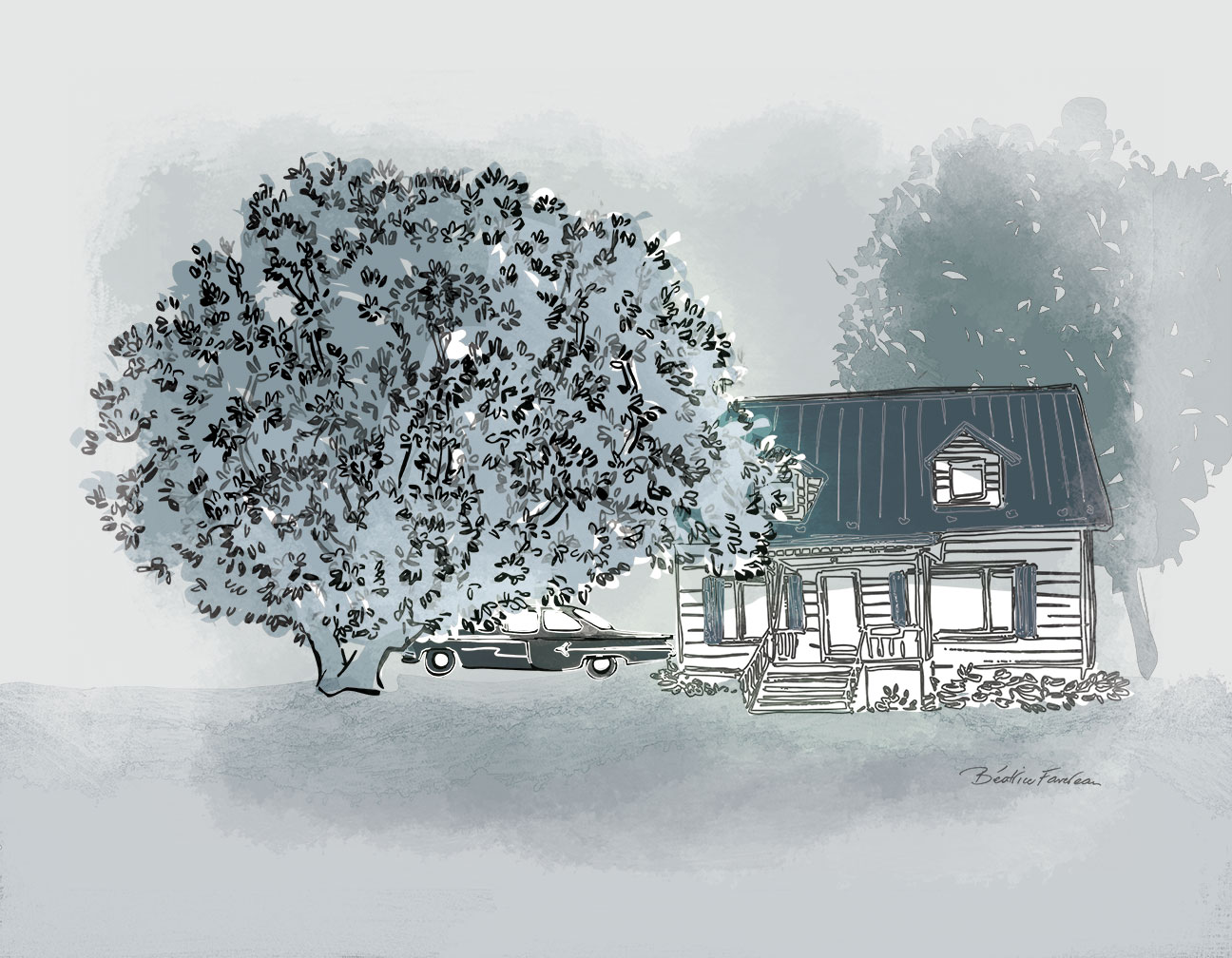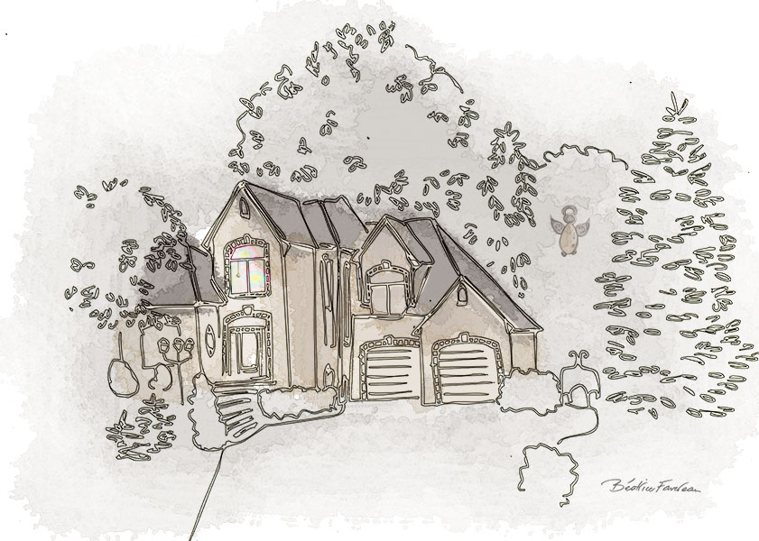 Portraits personnalisés d’après photo : maison, souvenirs de famille, lieux de bonheur.